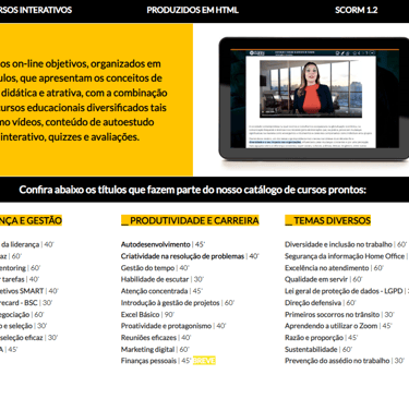 Disponibilize os cursos diretamente na plataforma de aprendizagem (LMS) da sua organização, para todos os seus colaboradores, sem restrições.